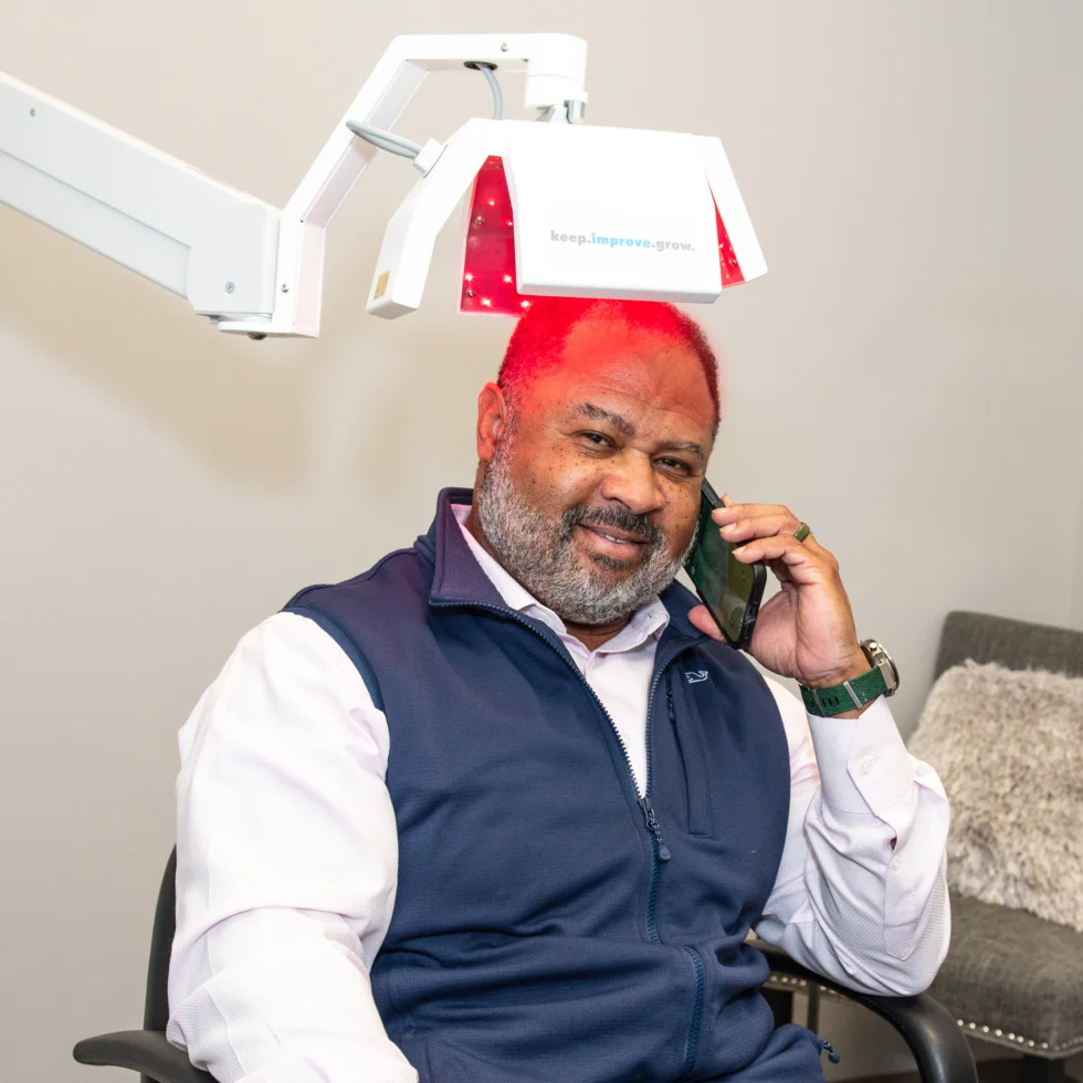 Additionally, in contrast to many over-the-counter hair growth solutions that are not scientifically- or medically-vetted, at Hair Enhancement Centers, all of our clients are under the direction of local physicians. The process begins with a 1-on-1 in-person or virtual consultation with a hair restoration expert. After this initial consultation, your unique hair loss situation will be assessed, and our physician will 1) determine if you’re a good candidate for Clinical Hair Growth Laser treatments, and 2) prescribe a customized treatment plan based on your hair regrowth goals/needs.